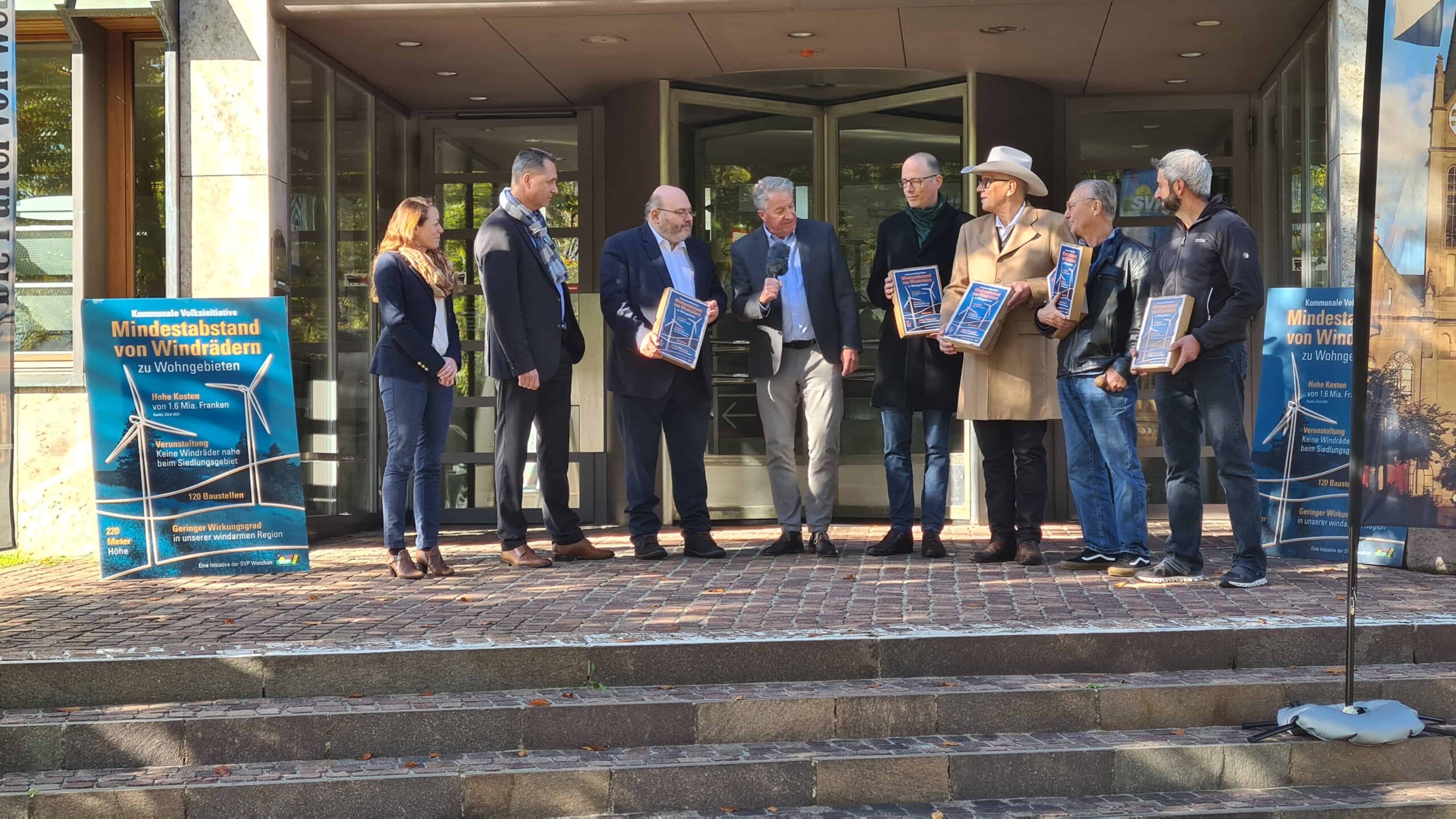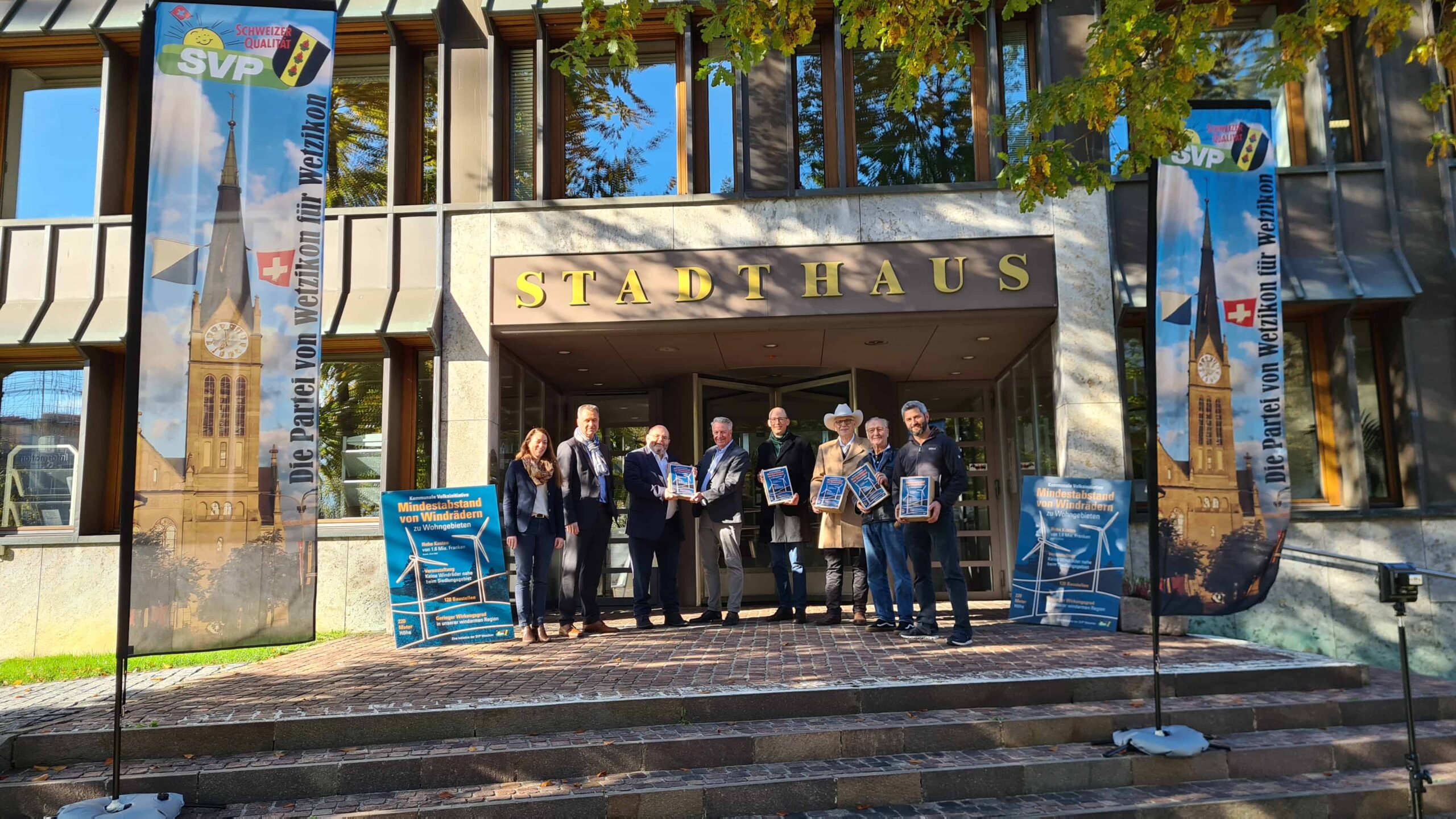 Die SVP Wetzikon freute sich, heute die kommunale Volksinitiative «Mindestabstand von Windkraftanlagen zu Wohngebieten» an den Stadtrat einreichen zu dürfen. Bei der Übergabe der Initiative waren neben Vertretern des Initiativkomitees auch der Stadtpräsident sowie die Stadtschreiberin von Wetzikon anwesend.