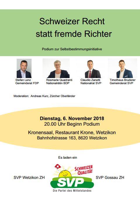Podiumsdiskussion zur Selbstbestimmungsinitiative am 6. November 2018