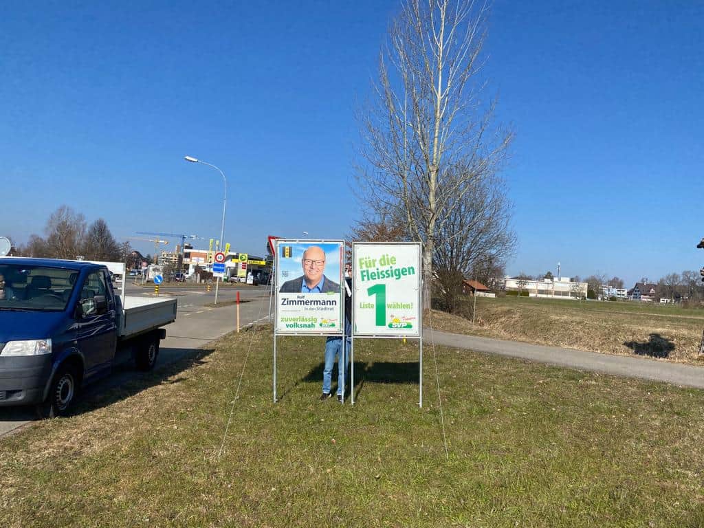 In Wetzikon herrscht Wahlkampfstimmung, und überall hängen und stehen die Plakate der politischen Parteien. Überall?