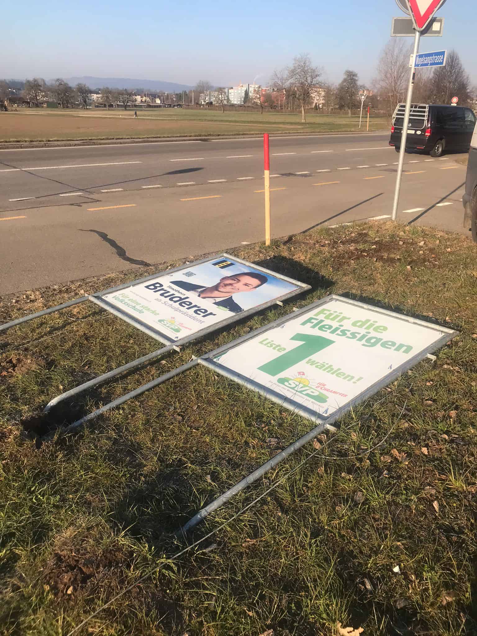 Nein, denn einmal mehr ist insbesondere die SVP von massivem Plakatvandalismus betroffen. Die Zerstörungen sprengen allmählich jegliche Vorstellungskraft. Sie gehen weit hinaus über die leider oft anzutreffenden Kritzeleien auf Wahlplakaten. Die feigen Antidemokraten schlugen im Schutz der Dunkelheit immer wieder am selben Ort zu (Kreuzung Hinwilerstrasse/Vogelsangstrasse). Mit roher Gewalt rissen sie die Pfosten aus dem Boden. Fleissig, wie es dem SVP-Wahlkampfslogan entspricht, stellten die ehrenamtlichen Helfer der Partei die Plakate immer wieder neu auf. Nach wiederholten Saubannerzügen wurden die zerbrechlichen Holzpfähle schliesslich am vergangenen Freitag durch Stahlgestelle ersetzt. Bereits am Samstagmorgen lagen auch diese Stahlgestelle, mit brachialer Gewalt verbogen, am Boden.